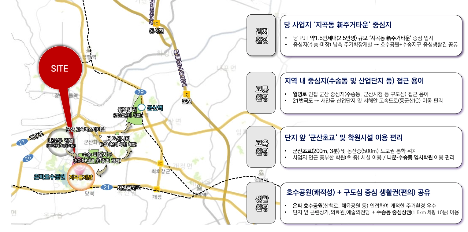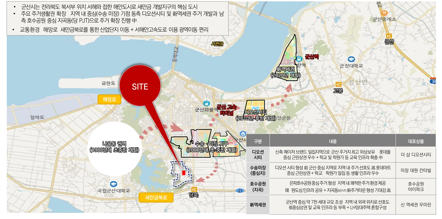 군산 중심지(수송 미장) 남측 주거확장개발/지역 내 교통 교육생활 인프라 양호