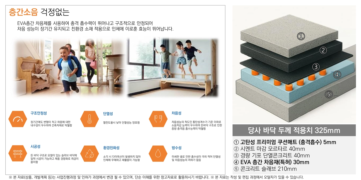 EVA 층간 차음재 및 쿠션 매트 설치로 층간 소음에 효과적입니다.